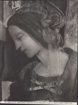 | Titolo proprio | Prato. Tabernacolo sul canto al Mercatale. La testa di S. Caterina, dettaglio (Filippino Lippi). |
